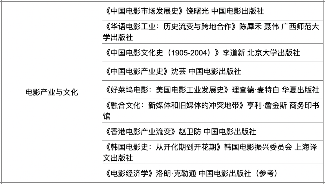 1. 101思想政治理论 2. 204英语二 3. 714电影创作基础 4. 960电影导演实务(专)(适用导演方向) 961电影剧作实务(专)(适用编剧方向) 966电影制片管理实务(专)(适合制片管理方向)