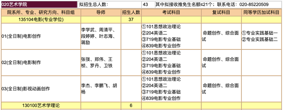 暨南大学 艺术学院 招收电影(专硕)研究生。