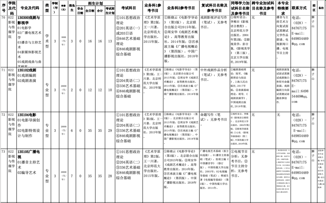 四川师范大学 影视与传媒学院 招收 戏剧与影视学(学硕),戏剧、电影、广播电视(专硕)研究生。