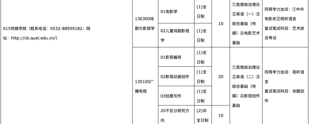 青岛科技大学 传媒学院 招收 戏剧与影视学(学硕)、广播电视(专硕)研究生。