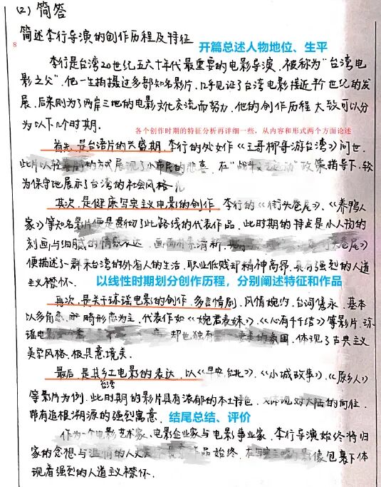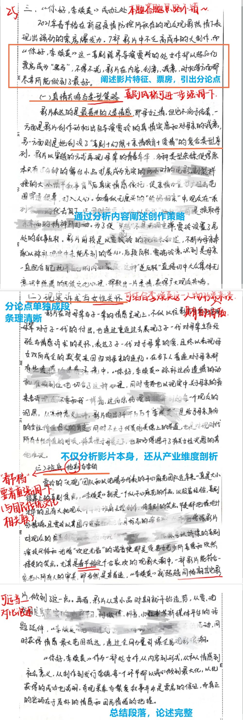 (2)整体逻辑结构最为重要:是否能一句话总结自己的答案?每一段的观点是什么,与核心的观点(引论)之间的联系是什么?举的例子是否有说服力?段与段之间的衔接能否自洽?