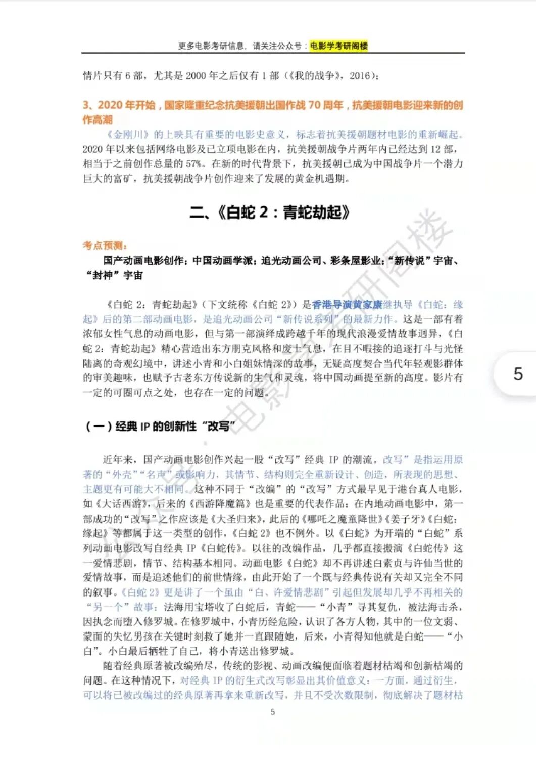除中外电影史、电影理论、创作基础、剧本写作等常规梳理外,还有4个小时的全年电影热点盘点,今年热门影片(《长津湖》《你好,李焕英》《白蛇2》等)、当下创作现象(新主流电影、灾难片、动画电影、艺术电影、纪录片等),电影C刊考点,等等。