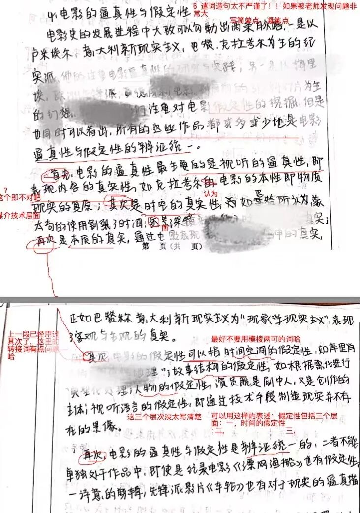 每一份提交给学长姐的试卷,学长姐都将仔细、认真批改,大到答题内容,小到语言表达、甚至错别字。