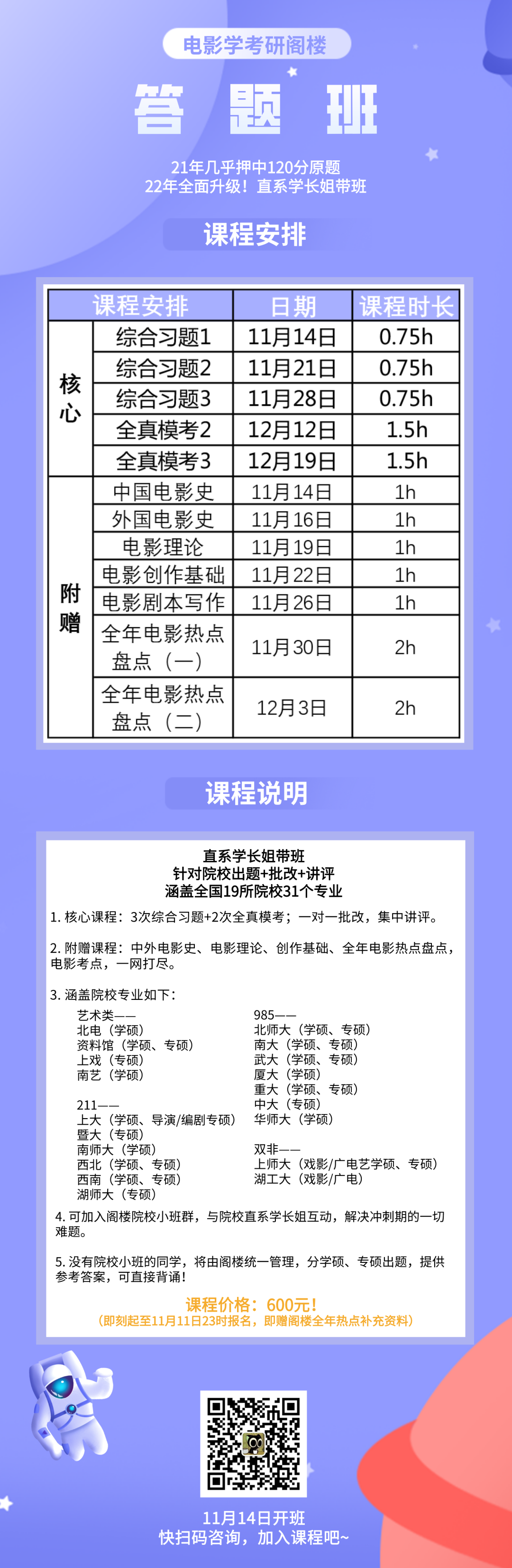 由于同学们的参与以及肯定,我们开设了面向全国电影院校的答题班。