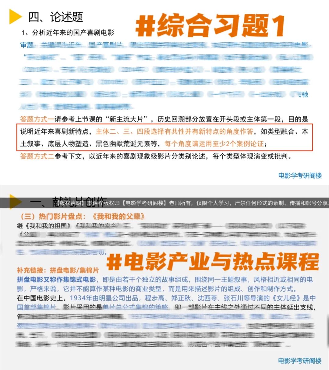 ②考察形式:题型固定,其中简答题中只考察作家或导演的创作风格;论述的电影题果不其然考察了非常热门的行业热点,戏剧题范围非常大,但只要有所了解也能作答。