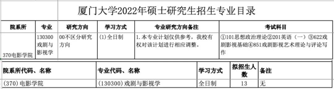厦门大学电影学院招收戏剧与影视学(学硕)研究生。