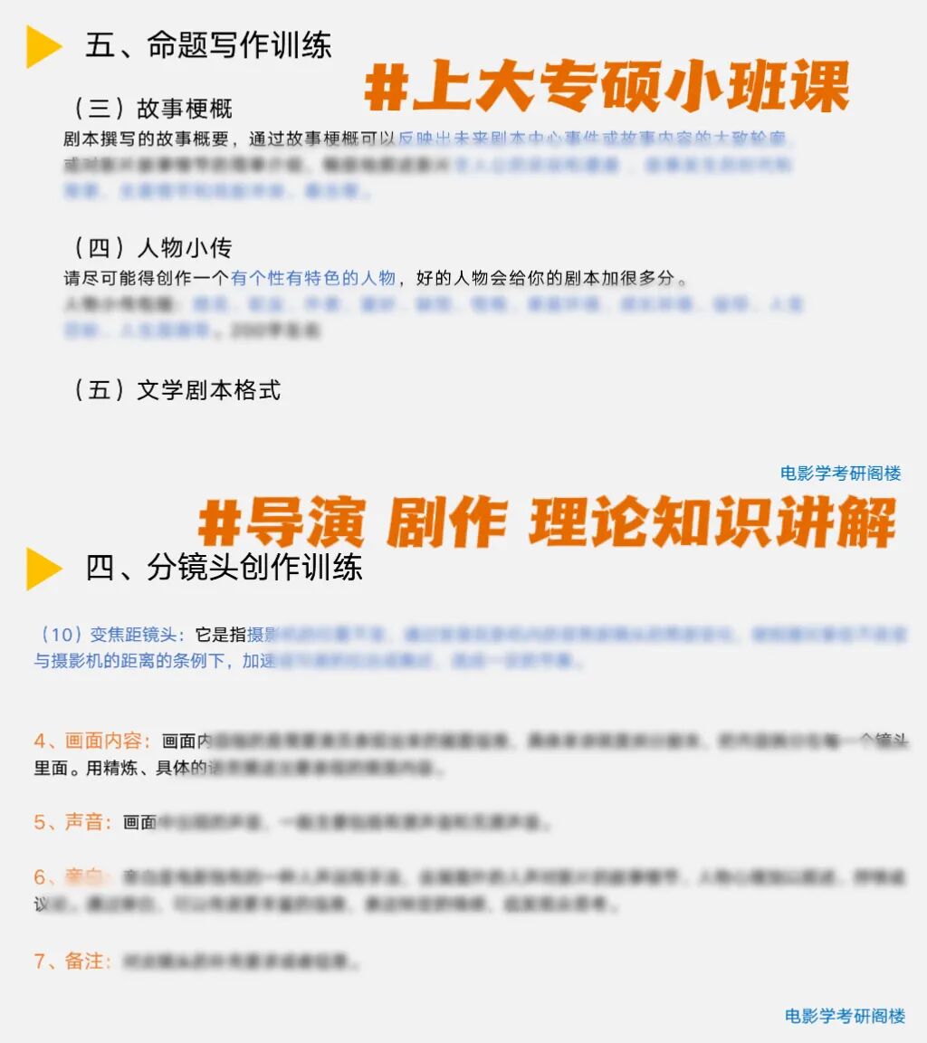 ③建议:专硕考察内容很全面,一定要尽早规划好复习进度,在学习的同时,补充阅片,或加强实践经验,更好地理解理论知识。同时,在注重视听语言、剧本创作等实务内容复习时,千万不能忽视史论和热点和学习,以免考察时有遗忘。