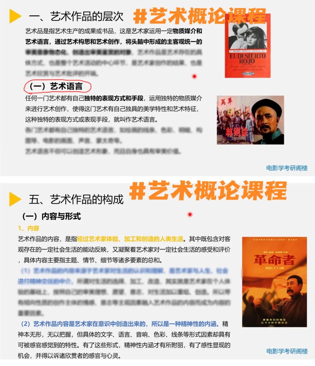 ③建议:考生们在复习时,应当首先搭建知识框架,每个知识点之间都可以建立练习,再结合具体的艺术作品去背诵记忆。同时,一定要关注近年的影视热点,最好能将近年的影视作品作为例证去答题。