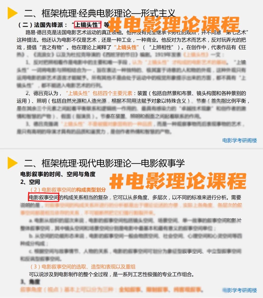 ②考察形式:名词解释和简答题都是对于电影理论具体知识点的解析,论述题为对电影流派的概述,但也要结合其同流派的其他理论家以及不同流派的理论观点。