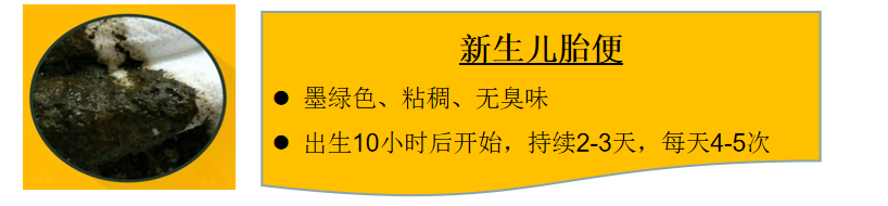 刚出生的孩子就算没有进食也会排出便便,主要由孩子在胎内吞入的羊水和胎儿脱落的上皮细胞、毳毛、皮脂以及胆汁、肠道分泌物等组成。通常是墨绿色、粘稠、不臭,我们称之为“胎便”,通常出生10小时后开始排出,每天4-5次,2-3天后过渡到正常大便,如没有胎便排出则有可能是肠道梗阻或畸形。