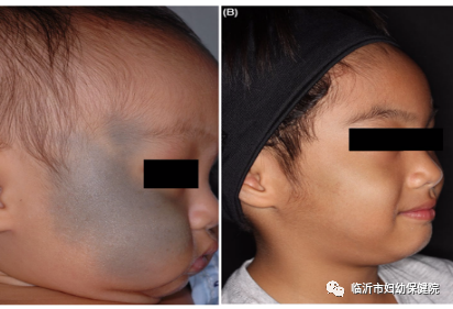 好多宝宝出生时脸上会有青紫斑块,这在医学上叫太田痣,太田痣是常于出生时或出生不久发生,临床多表现为单侧分布于颧部、颞部、眼结膜的深青色融合性斑片。女性发病率是男性的5倍,1岁以内发病居多,也有在青春期才出现的,不会自然消退。