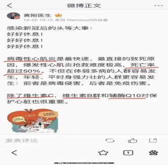 网上关于新冠猝死的新闻屡见不鲜,其中话题“阳过后小心病毒性心肌炎”,一度冲上热搜榜。