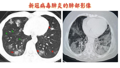 ①新冠病毒仅累及上呼吸道时,可能只有咳嗽的症状,但其累及下呼吸道时可能会发展成病毒性肺炎,部分患者还会继发细菌性肺炎。根据累及的范围不同,肺部会出现相应的的影像表现。从早期的“磨玻璃样”改变逐渐发展到“白肺”。