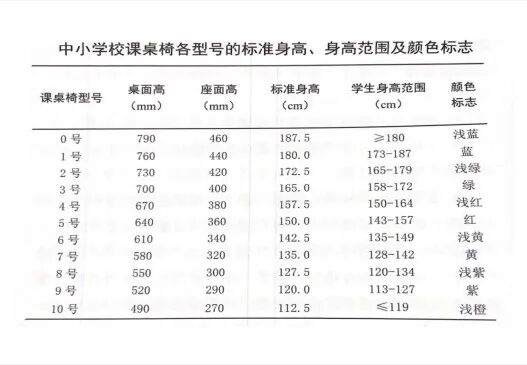 为了让孩子保持正确读写姿势,我们首先要根据孩子身高选择合适的桌椅。依据《山东省儿童青少年近视防控适宜技术推广技术指导手册》推荐的中小学课桌椅各型号的标准身高及身高范围为孩子挑选合适高度的课桌椅。