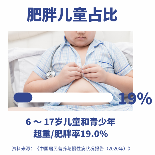 儿童青少年的超重肥胖率自上世纪90年代开始上升,目前正处于迅速上升期,一些大城市的儿童肥胖流行程度已接近发达国家水平。按2020年中国居民营养与慢性病状况报告显示6-17岁、6岁以下儿童青少年超重/肥胖率分别达到19%和10.4%。这样的发病率,已经将这个问题推到了一个不得不重视,也不得不下大力气解决的程度。