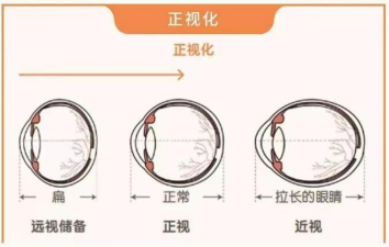 一般情况下,由于新生儿的眼球尚未发育完善,眼轴较短,平行光线经过眼球的屈光系统后聚焦于视网膜之后,这时孩子的眼睛呈现为远视状态。但这种远视是生理性的,称为远视储备。随着儿童不断地生长发育,眼轴增长,远视度数逐渐降低,一般到15岁左右会降到0,视网膜后的物像最终落于视网膜上,这个过程称为正视化。
