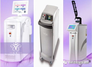 最常用的激光:二氧化碳点阵激光、脉冲染料激光和长脉宽Nd∶YAG激光。