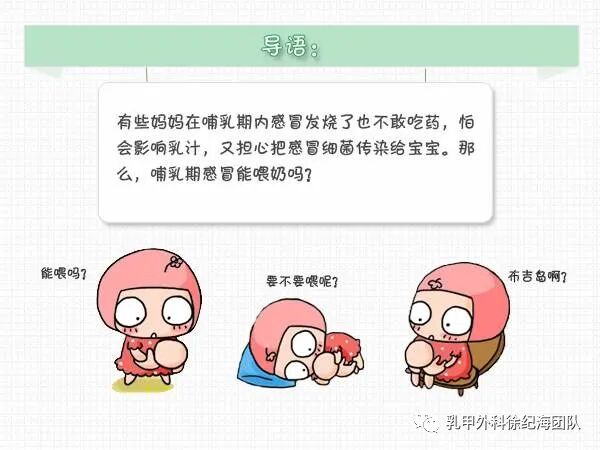 通常哺乳期妈妈感冒后可以继续哺乳,因为感冒大都是病毒感染,属于自限性疾病,不需要打针吃药,一般7—14天会自愈。而且妈妈得了感冒,乳汁中也会有相应的抗体,让吃母乳的宝宝能够被动免疫。妈妈只需戴口罩,避免传染给宝宝就好啦。所以母乳妈妈得了感冒,完全没必要担心。这里说的感冒是普通感冒,不是流感(流行性感冒)。
