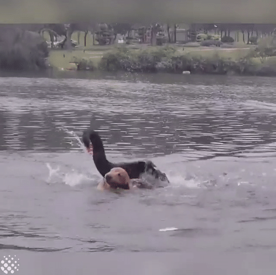 “老弟,你想游泳是吗?”