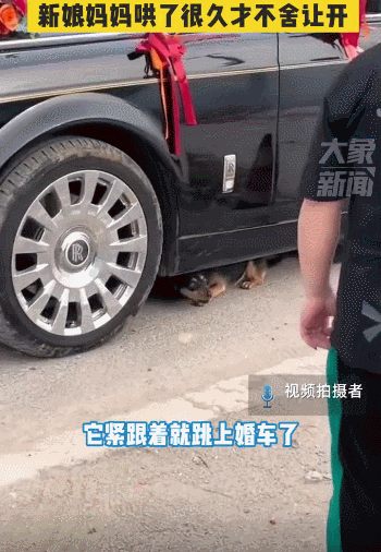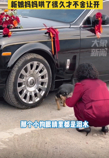 当天,养了狗狗两年的主人出嫁,狗狗见主人少了车就没再下来,便拦在车前。