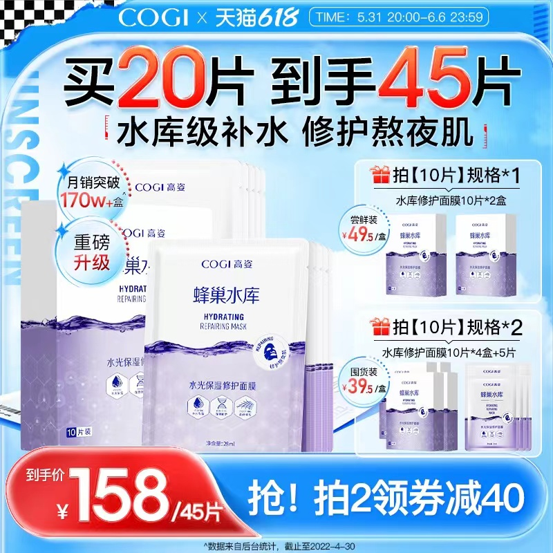 种草time:券后拍两件加立减至低仅需44.9元到手!到手足足40片!每片含25g玻尿酸精华,补水还挺好的!皮肤状态不好的时候、妆前急救、晒后褪红都可以敷一片~