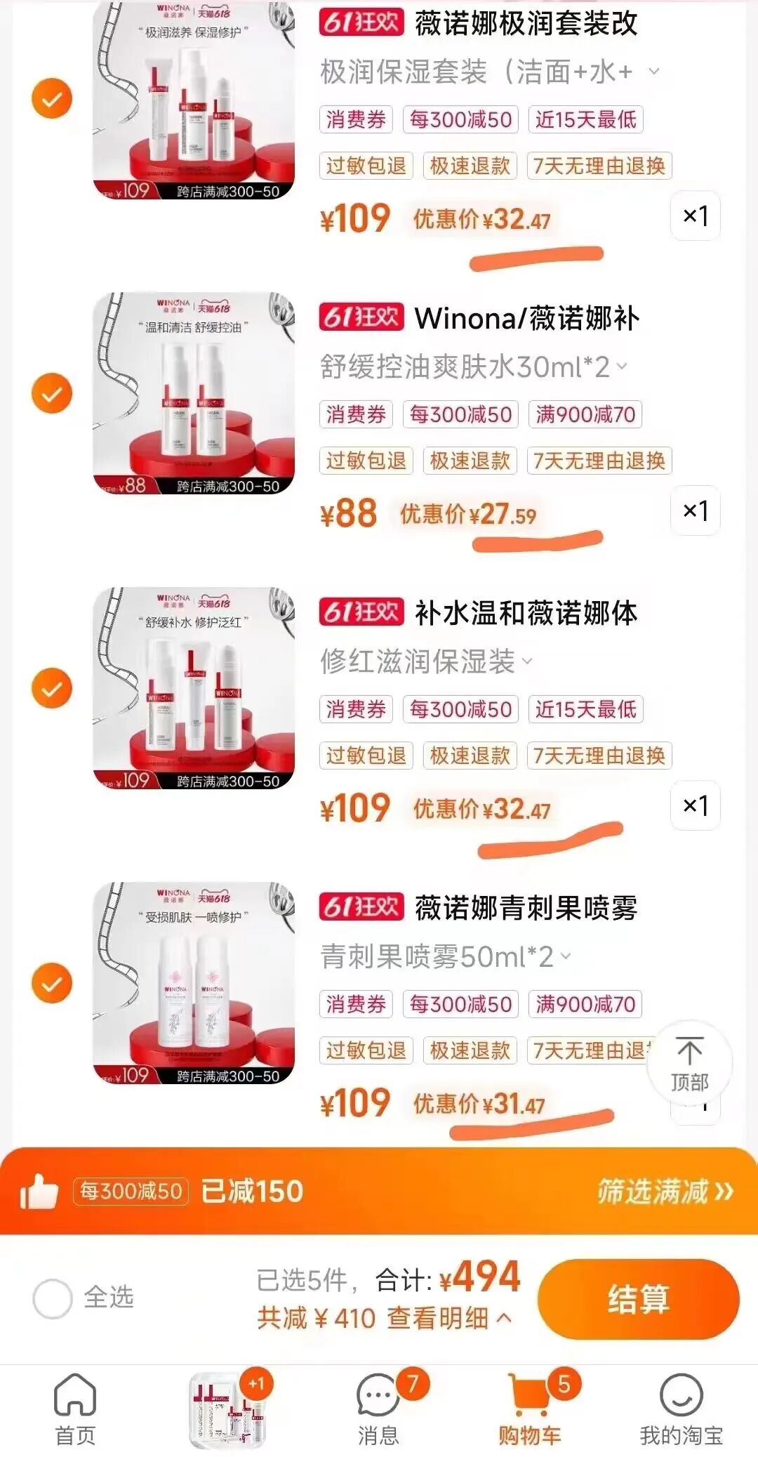 种草time:$32薇诺娜 极润保湿套装,$27薇诺娜 舒缓控油爽肤水30ml,$32薇诺娜 修红滋润保湿装,$31青刺果喷雾50ml*2,加购1件凑单 ,券后薇诺娜仅需$124!薇诺娜神車,便宜大碗,简直不要太划算~