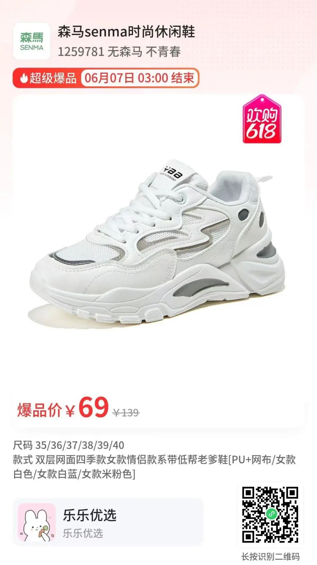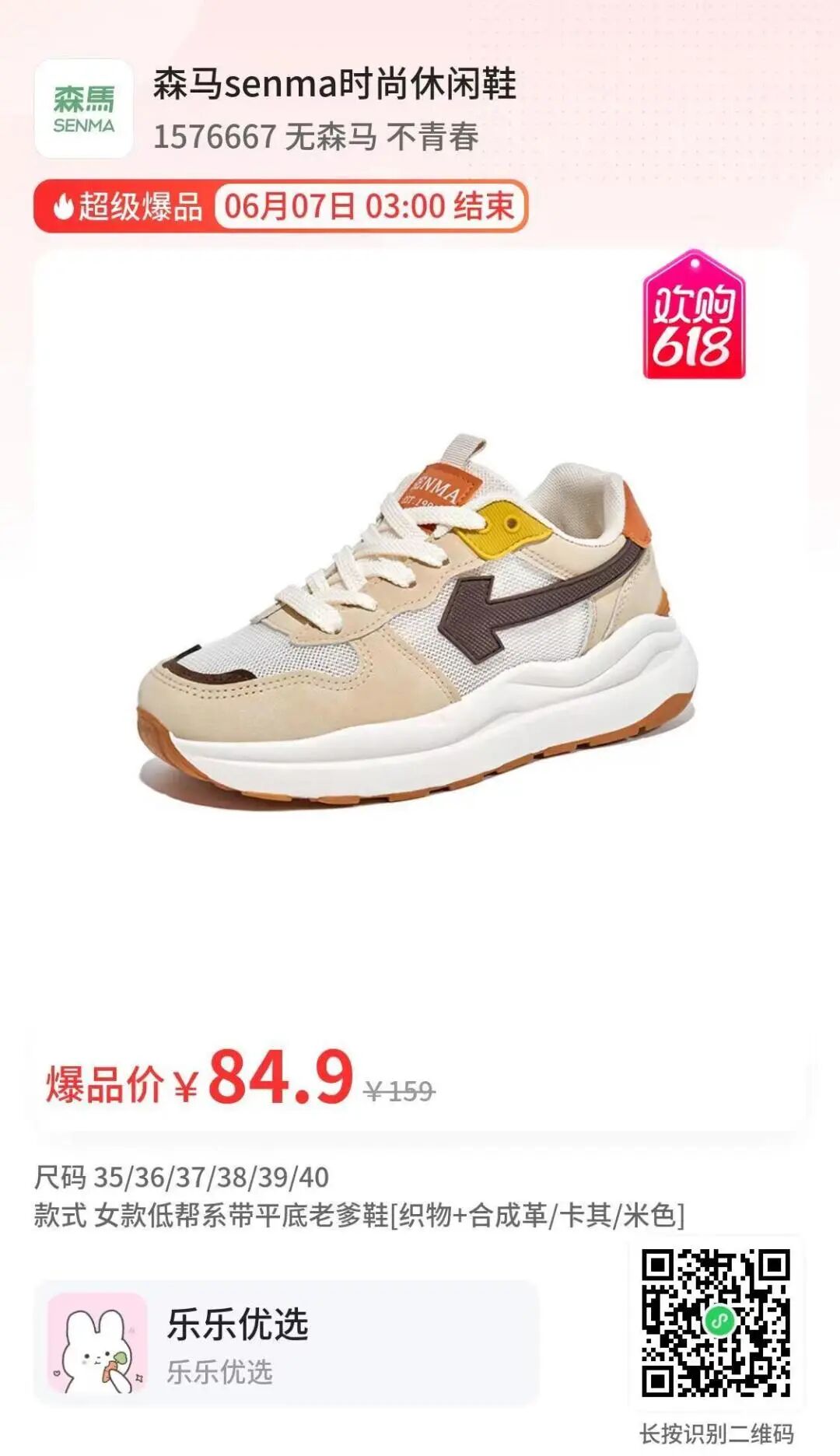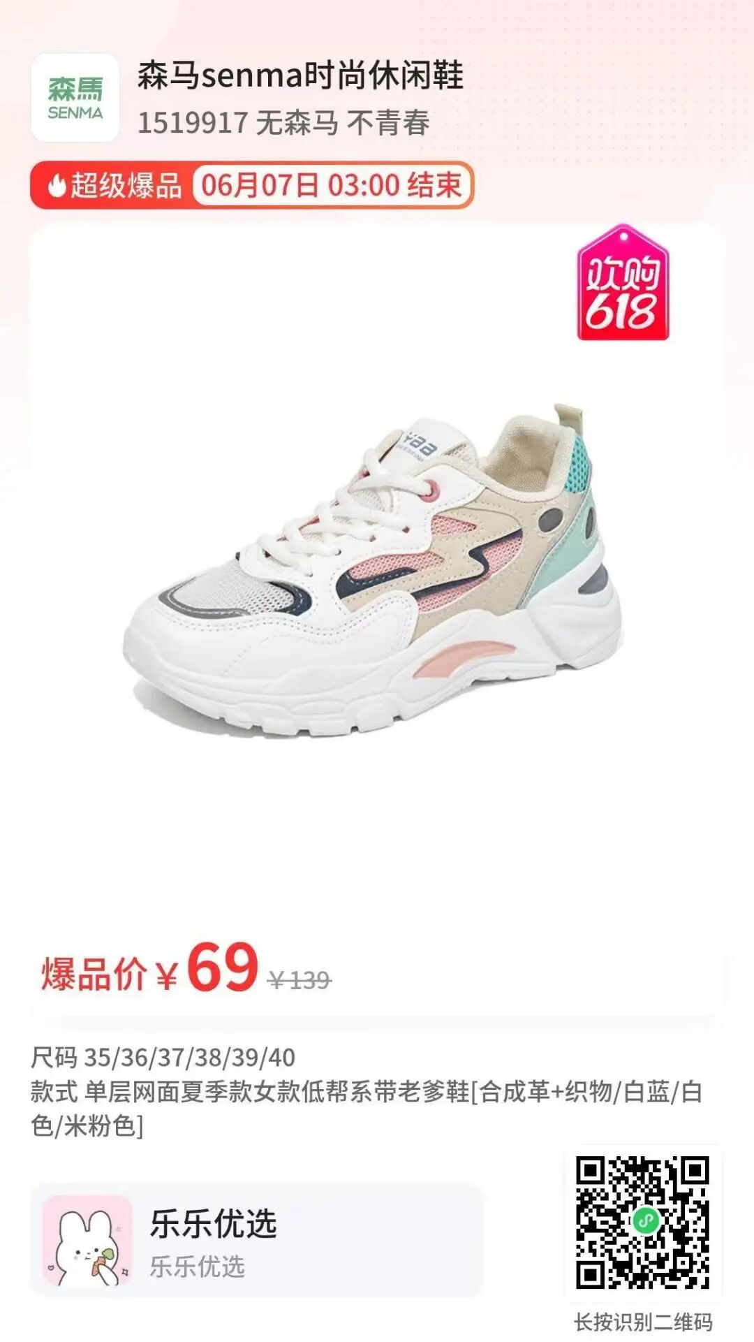 种草time:券后只要74元到手!还剩36-40码,看这配色还挺适合夏天的,鞋面是pu+网面,厚底的也能视觉上增高,有首单礼金更低~