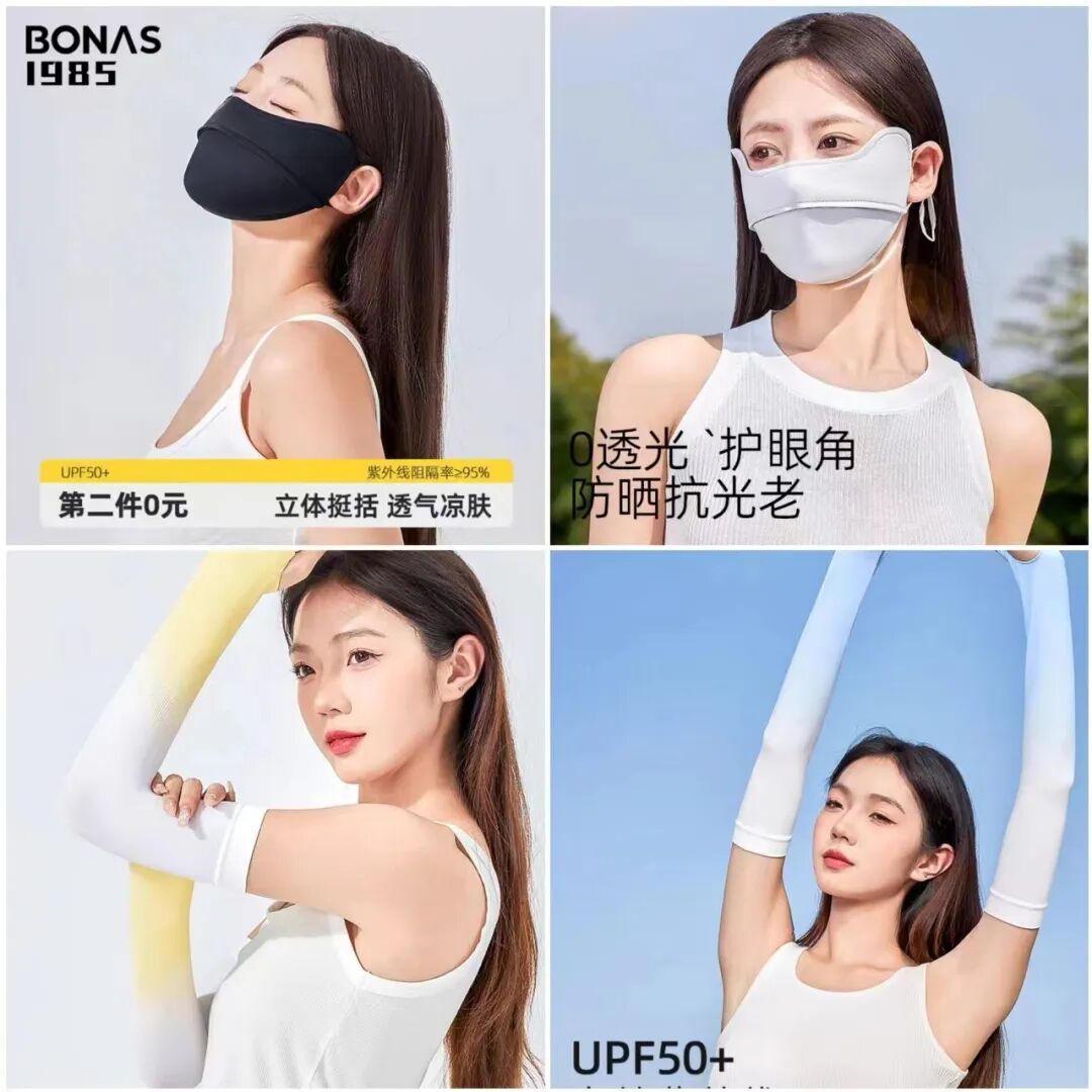 种草time:拍2件$19.9宝娜斯 冰丝腮红防晒口罩*2个拍2件$19.9宝娜斯 UPF50+防晒冰袖*2副 !物理防晒冲上,不怕晒黑晒伤!