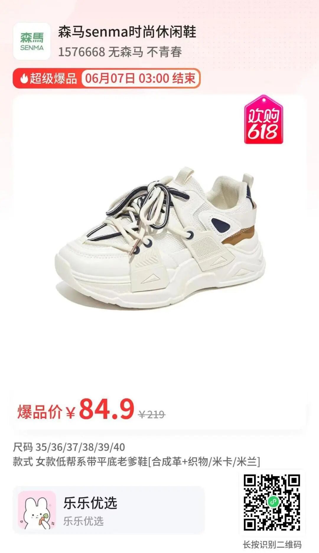 种草time:券后加立减至低仅需49元到手~35-39码有三十多歀可选,各种运动鞋、老爹鞋都有!上脚舒适透气,还增高显腿长