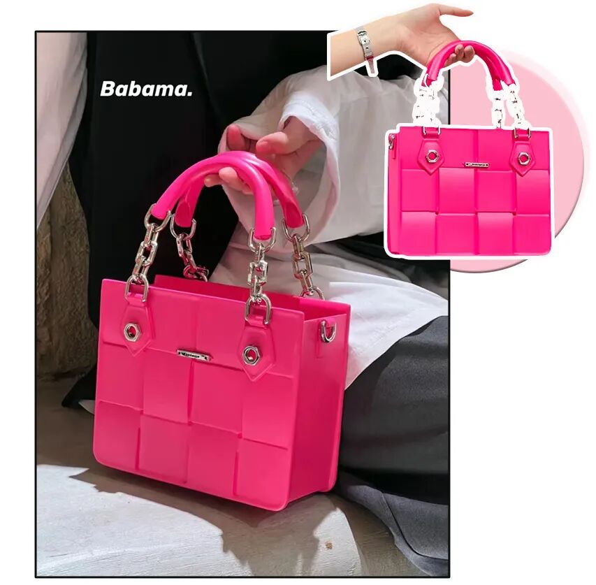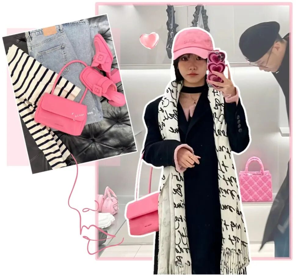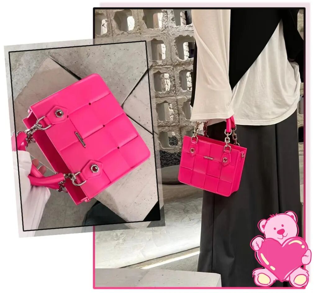 再来一个属实夸张的热辣芭比!!带点荧光的火龙果色!Babama的编织包大家应该都略有耳闻,浓墨重彩的粉色+冷色金属链条,酷毙了好嘛!Hot的很不一般!