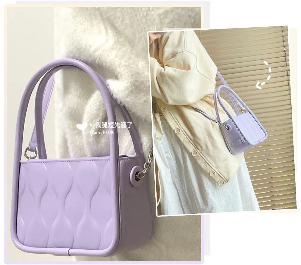 香芋紫自带温婉气质,和浅色系的穿搭都特别和谐。只用30r,这只波利包就做出了高级耐看的款式,感觉是韩国街头的妹妹都爱背的辣种休闲款~又奶又甜又温柔,自带小仙女滤镜!