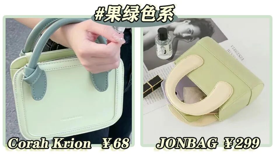 JONBAG这款可可爱爱的嫩芽绿陶土包,超适合装嫩。和奶黄的巧妙撞色,是哈密瓜香草味奶昔没错了!反正好像一整个都被奶油浸泡过,清爽甘甜,狠狠温柔住!