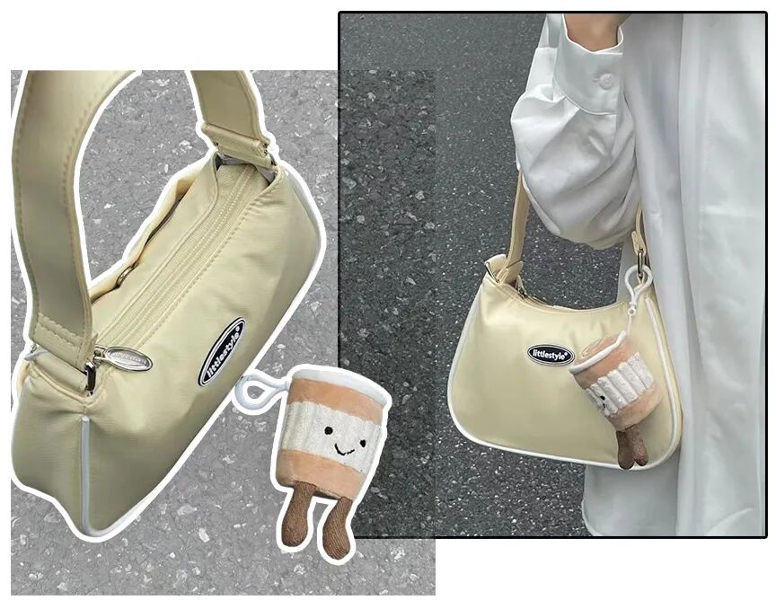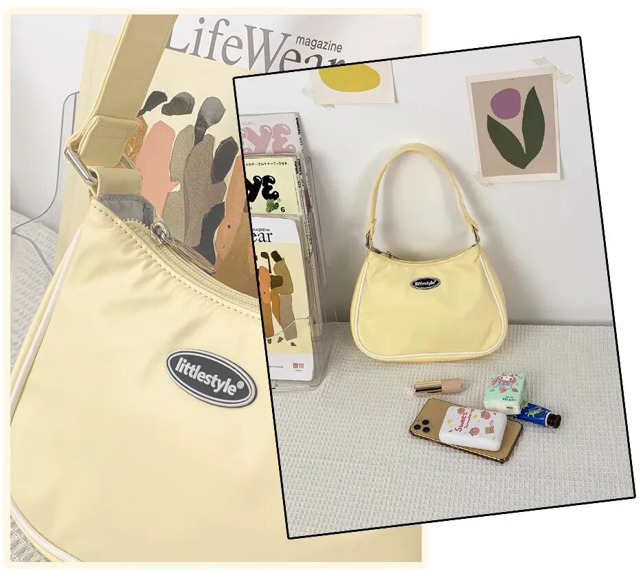 Livebox这款是休闲风的小hobo👇,色调偏暖黄,奶fufu的,好像冒着黄油香气~白色包边,把运动元素发挥到极致。边角处都是比较简单的设计,不会凌乱繁杂,风格就还蛮cool的。可腋下,可手提,平日里搭配T恤、长裙、辣妹装都很ok。
