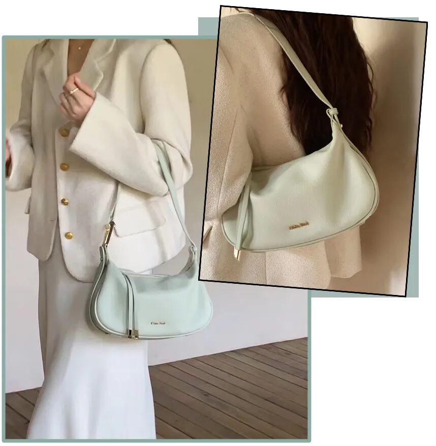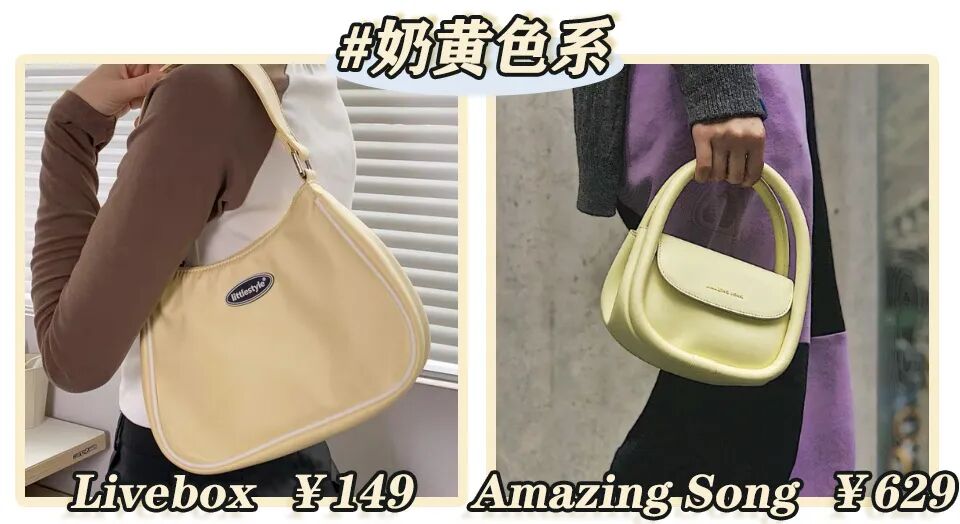 Amazing Song这款太火啦,软欧包包型,软牛皮摸上去质感贼拉高级,还好rua!色调是鹅黄,在暖黄里多掺了一丝绿,意外显白哦!除了黄色,还有十余种配色,都很符合多巴胺穿搭,宝们也可以根据OOTD选择其它色系。