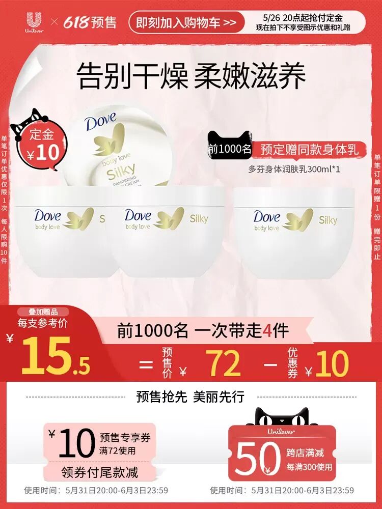 预售Dove多芬 大白碗身体乳300ml*3+赠同款身体乳300ml