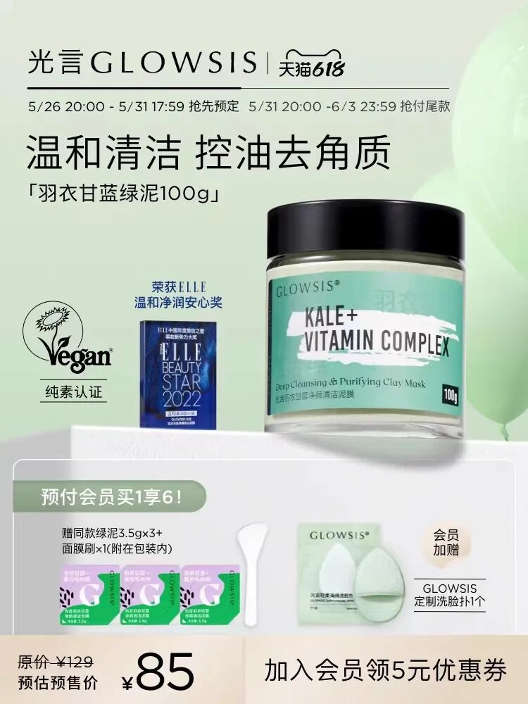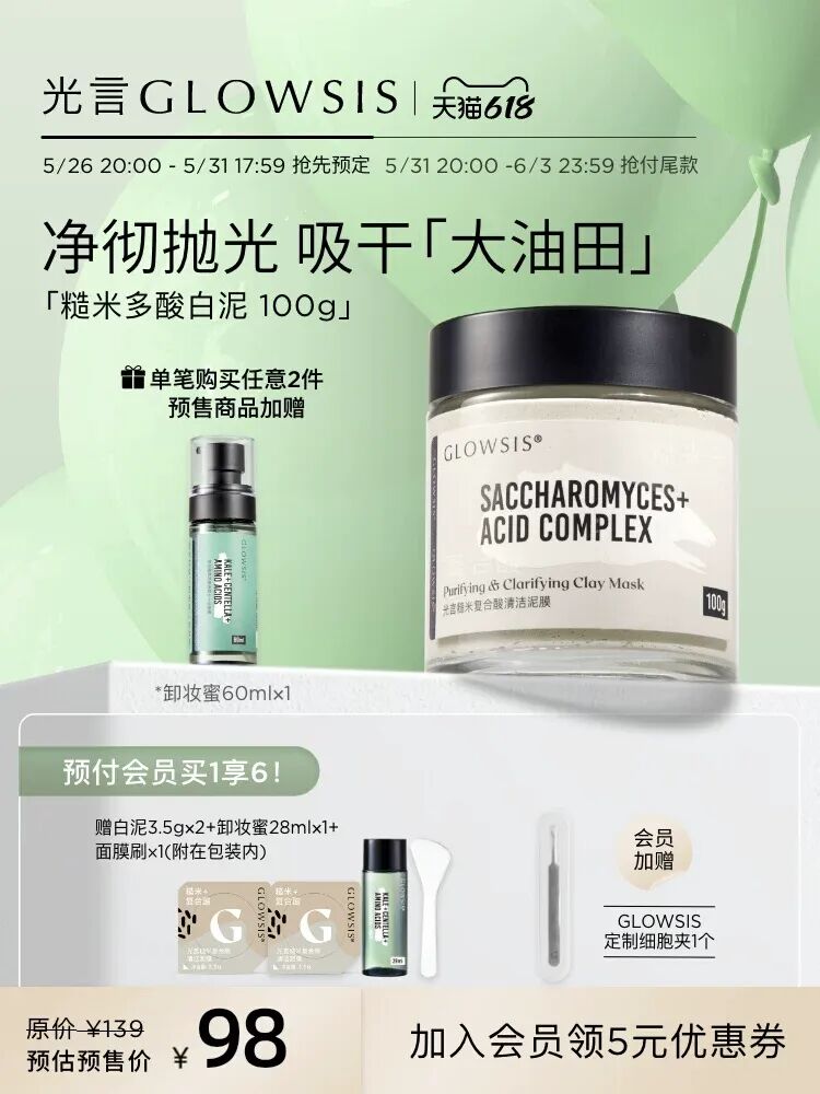 预售光言 白色泥膜+赠白泥3.5g*2+洁颜蜜28ml+面膜刷+入会赠细胞夹