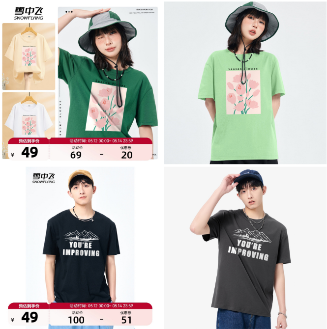 种草time:$49雪中飞 女款印花T恤;$49雪中飞 男款印花T恤~雪中飞官旗🚩还有送运险,来选选叭,男女款都有~