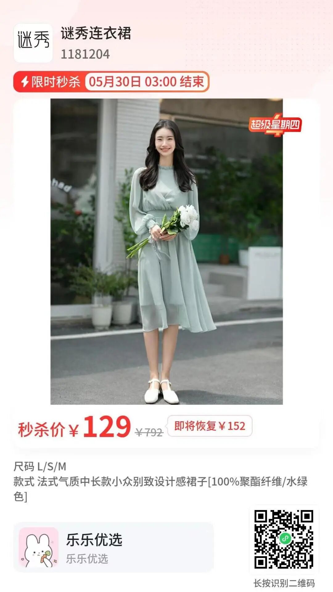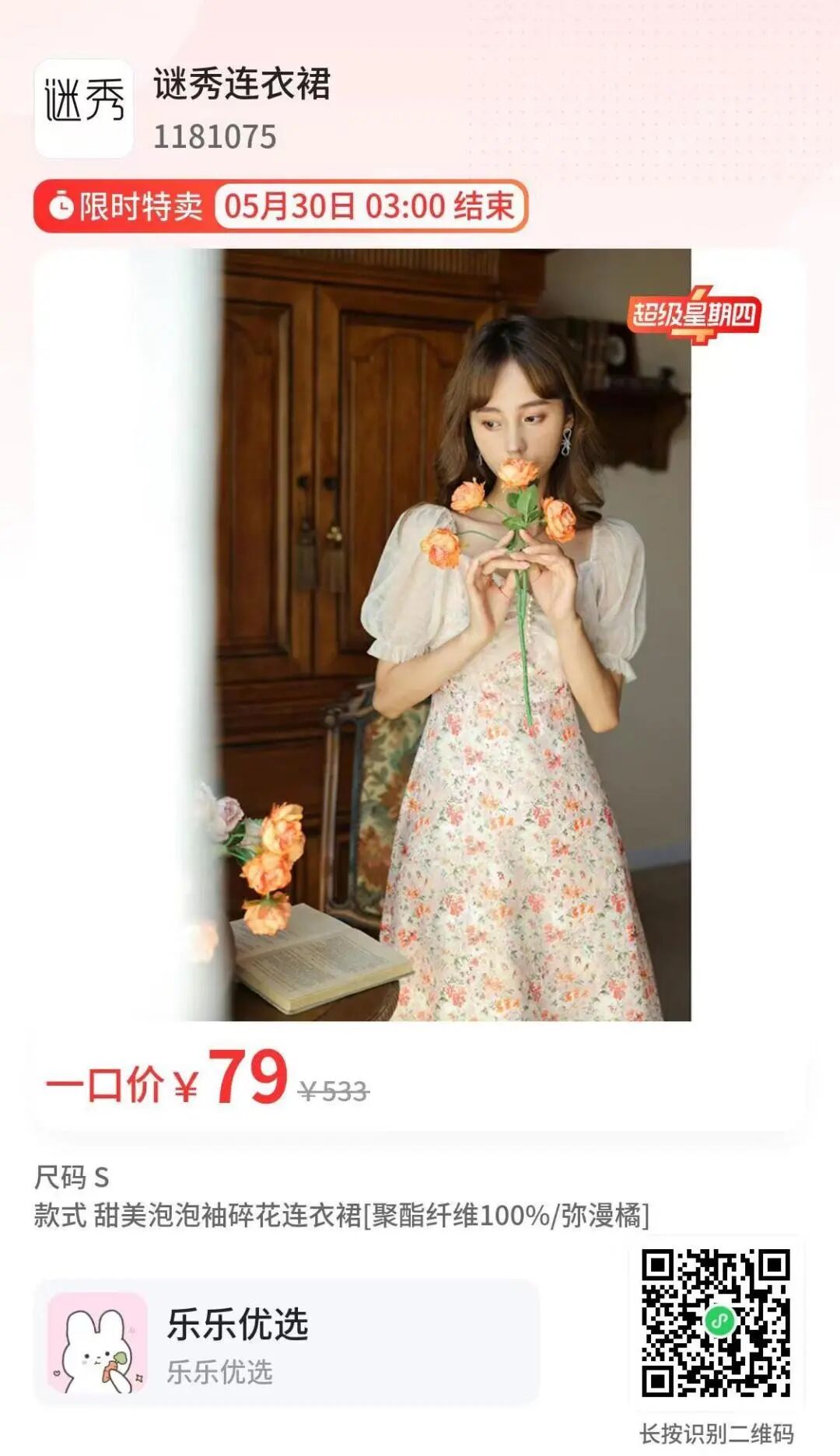 小懒猫法式木耳边方领长款连衣裙原价:139.9元