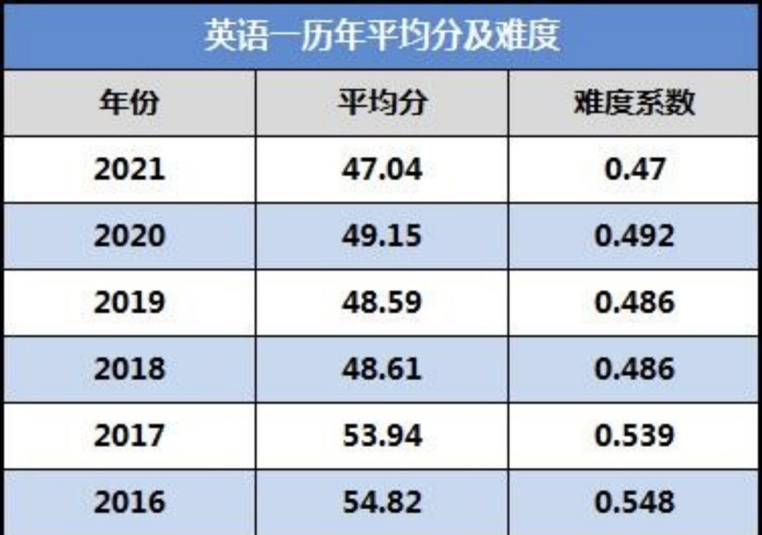 2021年考研英语直接难上了热搜,很多同学都没答完。2021年英语一全国平均分仅为47.04分,难度系数0.47,是近几年最低。从数据中,大家能够看出,英语二的平均分在21年里出现了明显的浮动,说明去年的英语二难度照往年是有所增加的。总体来说,2022年考英语二的同学压力应该还是挺大的,不过大家也不要太紧张,按部就班好好学就行了,要难一起难。