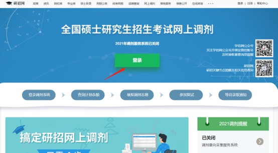 首先,打开研招网https://yz.chsi.com.cn/,点击【网上调剂】后,再点击【登录】,使用自己的学信网账号或者自己实名过的微信和支付宝账号都可以登录。登陆之后,点击【网上调剂】(目前还没开通,是灰色状态)。