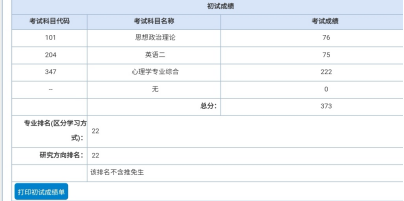 初试成绩为373分 排名22名 目前已经拟录取