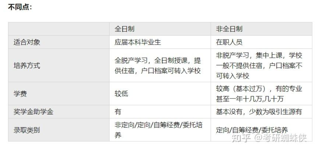 因为现在非全日制原则上要求定向培养了,所以再补充一个★全日制和非全日制的区别: