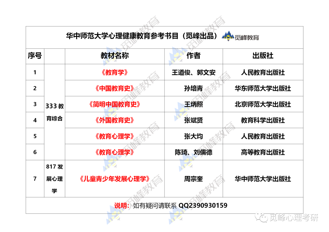 华中师范大学心理健康教育专业二的参考书是周宗奎的《儿童青少年发展心理学》,该书是按照不同的心理特征在不同年龄阶段的不同表现,比如情绪的发展特点,在胎儿期、婴儿期、幼儿期、儿童期不同的发展特征,这是发展心理学的横向思路;而林崇德老师的《发展心理学》也很需要我们去学习,这本书是纵向来阐述心理特征,从胎儿、婴儿、幼儿、儿童、、、到老年,不同的年龄阶段的生理、认知、情绪、行为等不同特点。