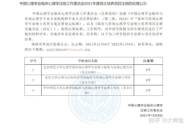 综合以上几个要求,我选择了华中师范大学应用心理非全日制。华中师范大学是武汉市一所211双一流高校,心理学学科排名全国第五。由于我想成为一名心理咨询师,而心理咨询师资格证2017年已经全部取消,学历教育就成了为数不多的可行的途径。更重要的是中国心理学临床心理学注册工作委员会认定全国三所高校的专业硕士,经过考核就能成为助理注册心心理师,而华中师范大学就是三所中的其中一所,另外两所是大名鼎鼎的北京师范大学和北京大学。