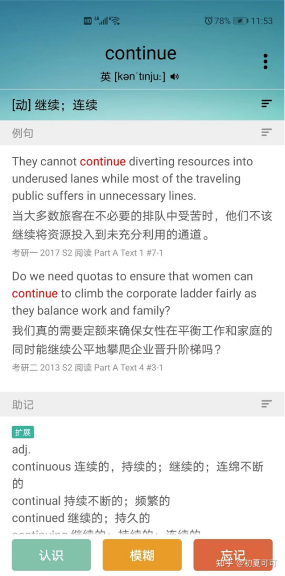 4)结合真题记忆:背单词千万别只死记硬背后面的各种释义,一定要在真题中理解着背,一方面可以通过单词APP自带的真题例句,另一方面和前面说的一样,可以在刷真题的时候同步背单词并不断加深理解记忆。