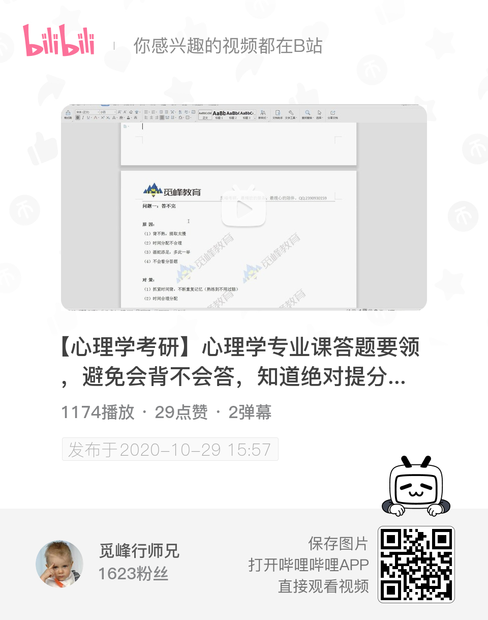 如果嫌麻烦也可以买我们的模考班,价格仅需559,包含5次模考,2次批改,按照经验可以提高5-20分。需要的同学可以在淘宝搜“觅峰心理学考研”购买。