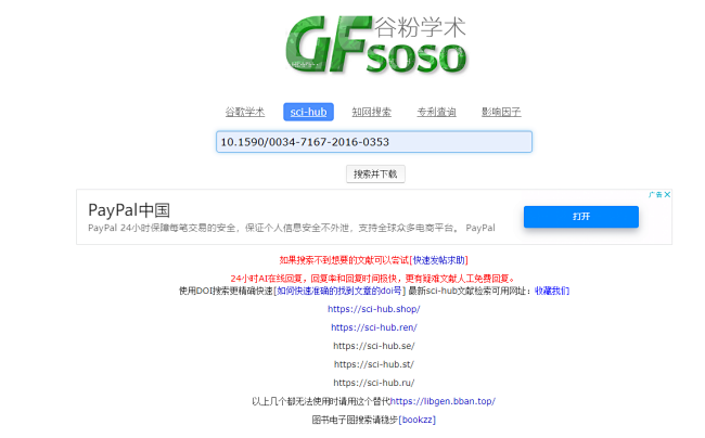 如果你在上述我讲的文献网站中有打不开的文献,直接把DOI搞过来,在这里进行搜索,就可以解决!