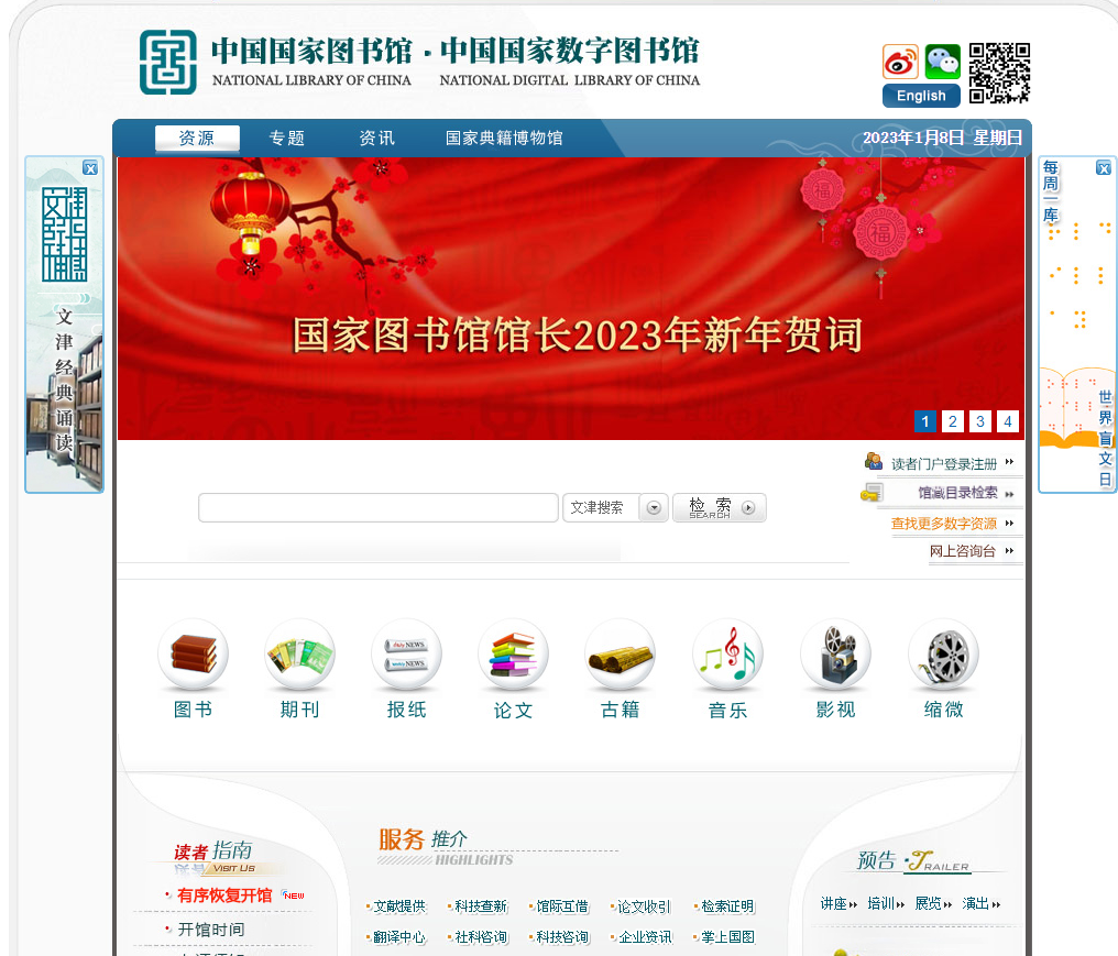 中国国家图书馆首页