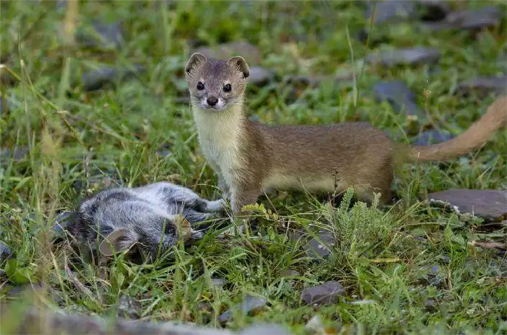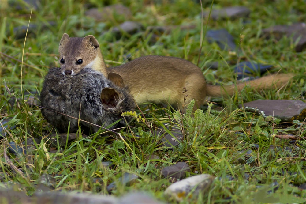 当然了,香鼬有时候也会在地面上直接发起攻击,逮到一只算一只。你别看它小小个的,其咬合力不容小觑,而且还是个小小的“大力王”,能叼着比自身重2倍的猎物,健步如飞。