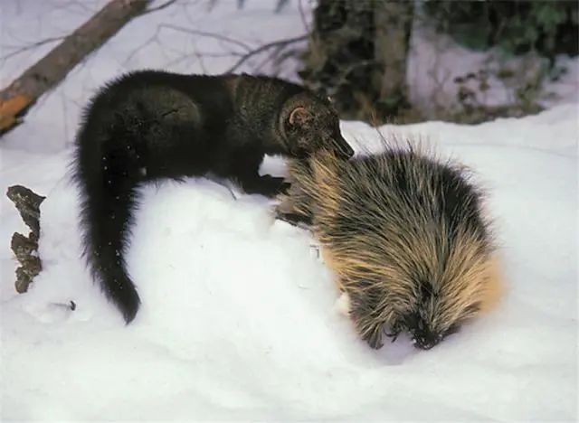 渔貂是少数几种能捕食豪猪的动物,所以赢了个“豪猪杀手”的称号。身披尖刺,可以横着走的豪猪,碰到渔貂,只能自认倒霉了。